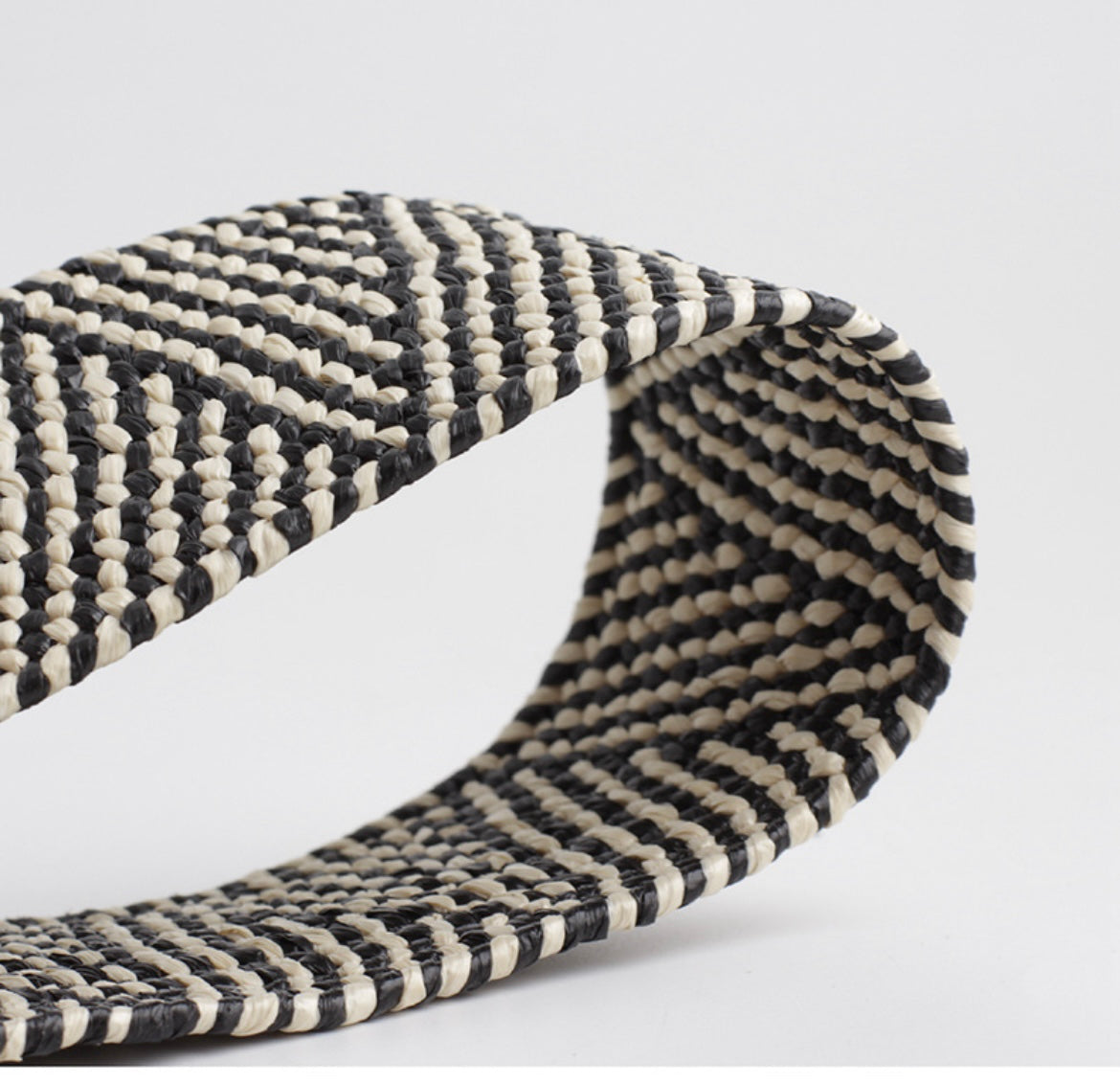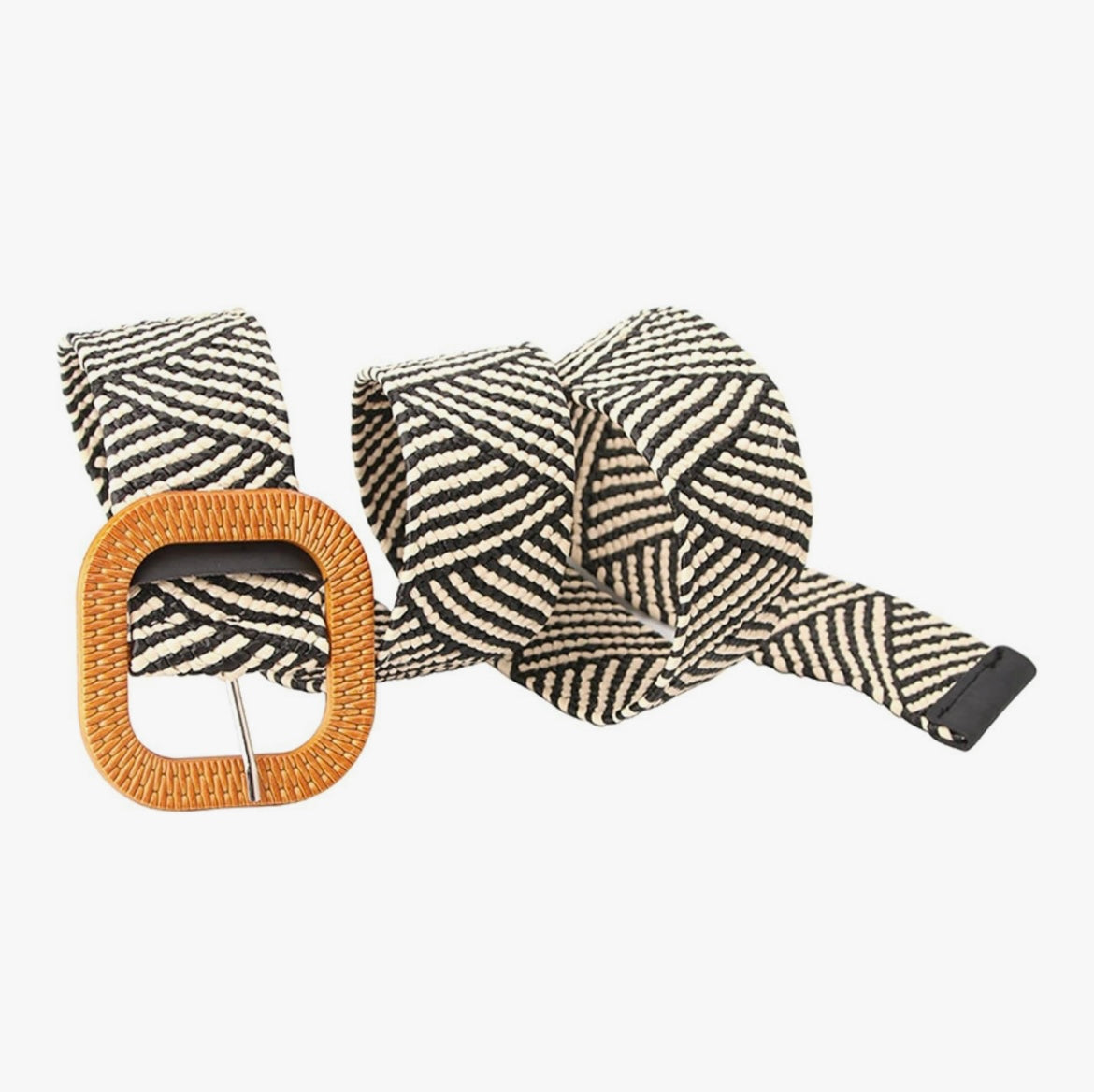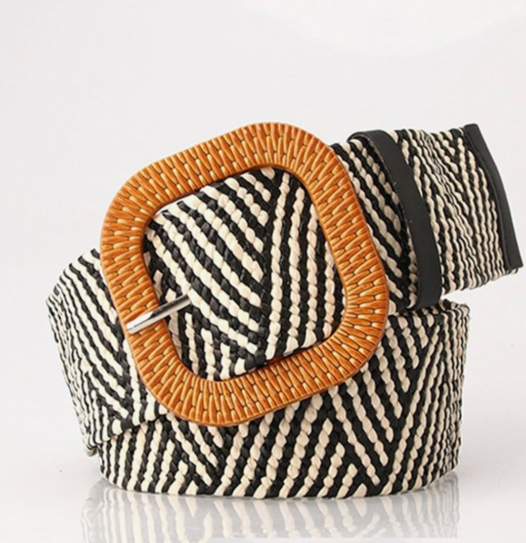 This expertly crafted Braided Weave Belt offers a versatile and stylish accessory to elevate any outfit. The black and white woven design showcases precision and sophistication, complemented by a sleek wood buckle. An essential addition to any wardrobe, this belt offers both durability and effortless elegance.
