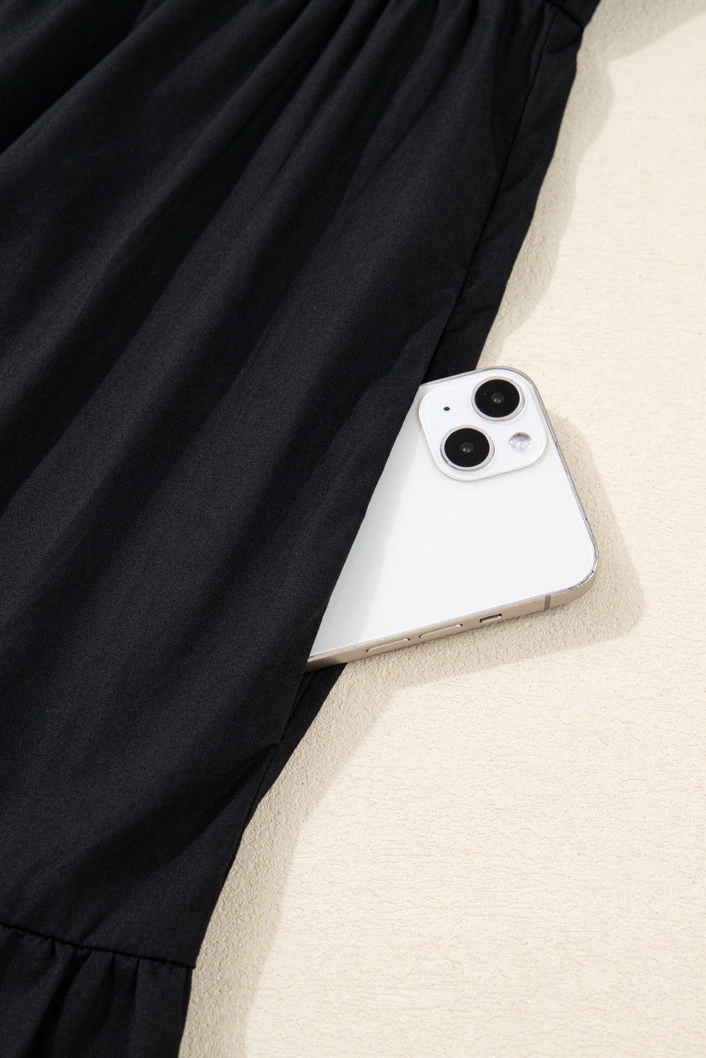 Classic Black Tiered Mini Dress with Tie Sleeve Detail – Effortless Chic Style