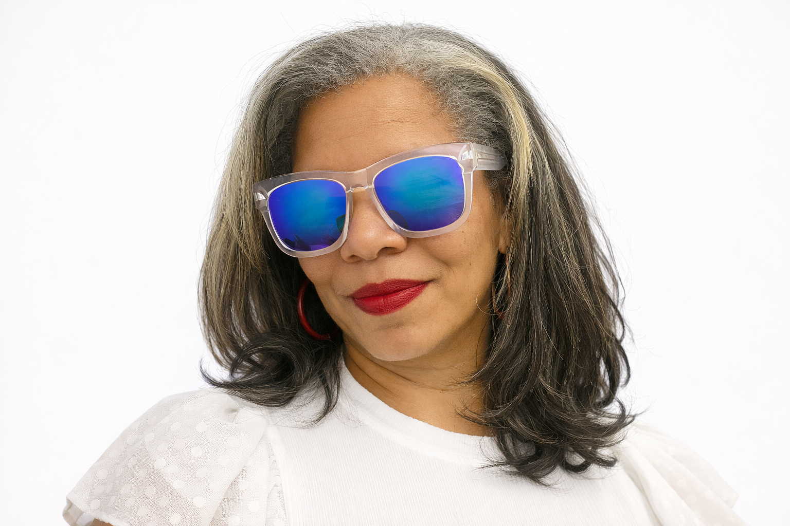 Turn heads with these clear frame sunglasses featuring bold blue mirrored lenses. Lightweight, modern, and effortlessly chic, these statement shades elevate casual and dressed-up looks while offering stylish sun protection. A must-have accessory for confident, fashion-forward women.