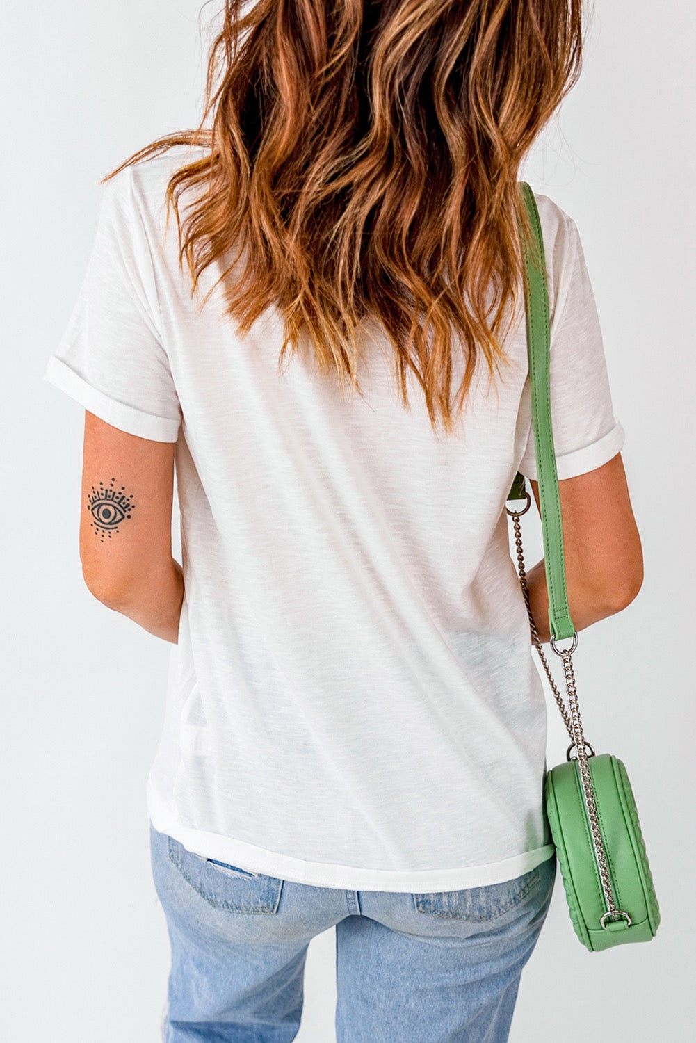 Patchwork “Merry Christmas” Graphic Tee – Festive Holiday Print T-Shirt