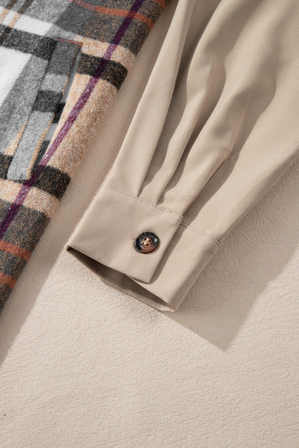 Stay effortlessly chic in this plaid button-down shirt dress, the perfect blend of comfort and style for your everyday wardrobe. Featuring a classic collared neckline, neutral khaki top with bold plaid patterning, and a relaxed fit, this long-sleeve dress is versatile enough for both casual days and stylish nights out.